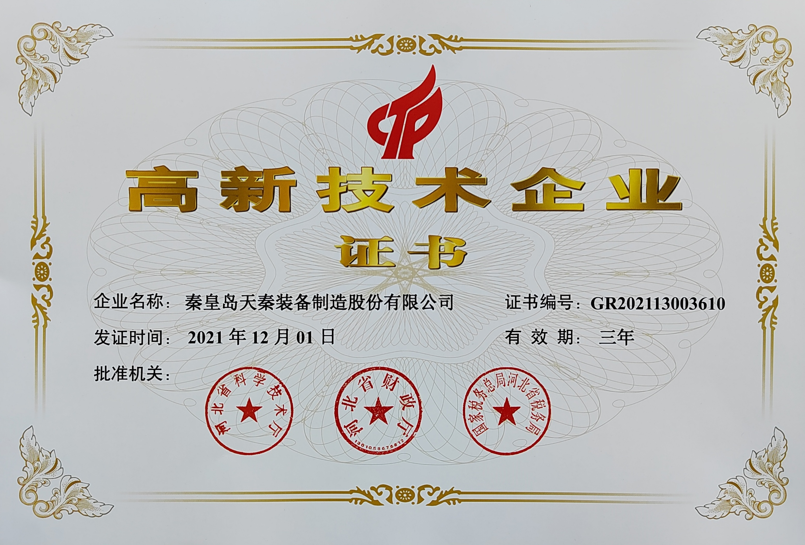 • 秦皇島天秦裝備制造股份有限公司創(chuàng)立于1996年,總部位于河北省秦皇島市經(jīng)濟(jì)技術(shù)開發(fā)區(qū),秦皇島廠區(qū)占地4萬平方米,擁有3萬平方米的標(biāo)準(zhǔn)廠房、辦公樓和工程技術(shù)研發(fā)中心;分部天津廠區(qū)位于天津市靜海經(jīng)濟(jì)開發(fā)區(qū),占地2萬平方米,擁有1.6萬平方米標(biāo)準(zhǔn)廠房。 公司通過了GB/T 19001質(zhì)量管理體系及GB/T 24001環(huán)境管理體系認(rèn)證,是國(guó)家高新技術(shù)企業(yè)、河北省軍民融合產(chǎn)學(xué)研用創(chuàng)建基地,建有省級(jí)院士工作站。